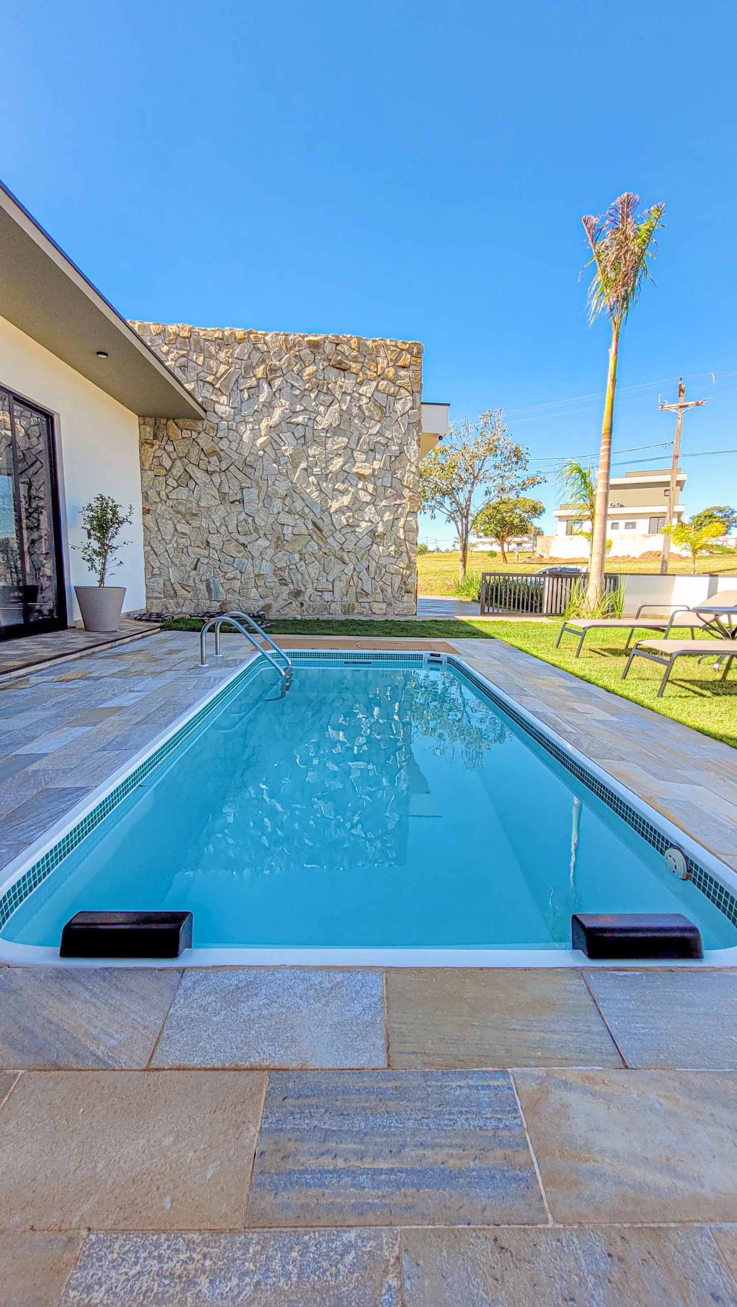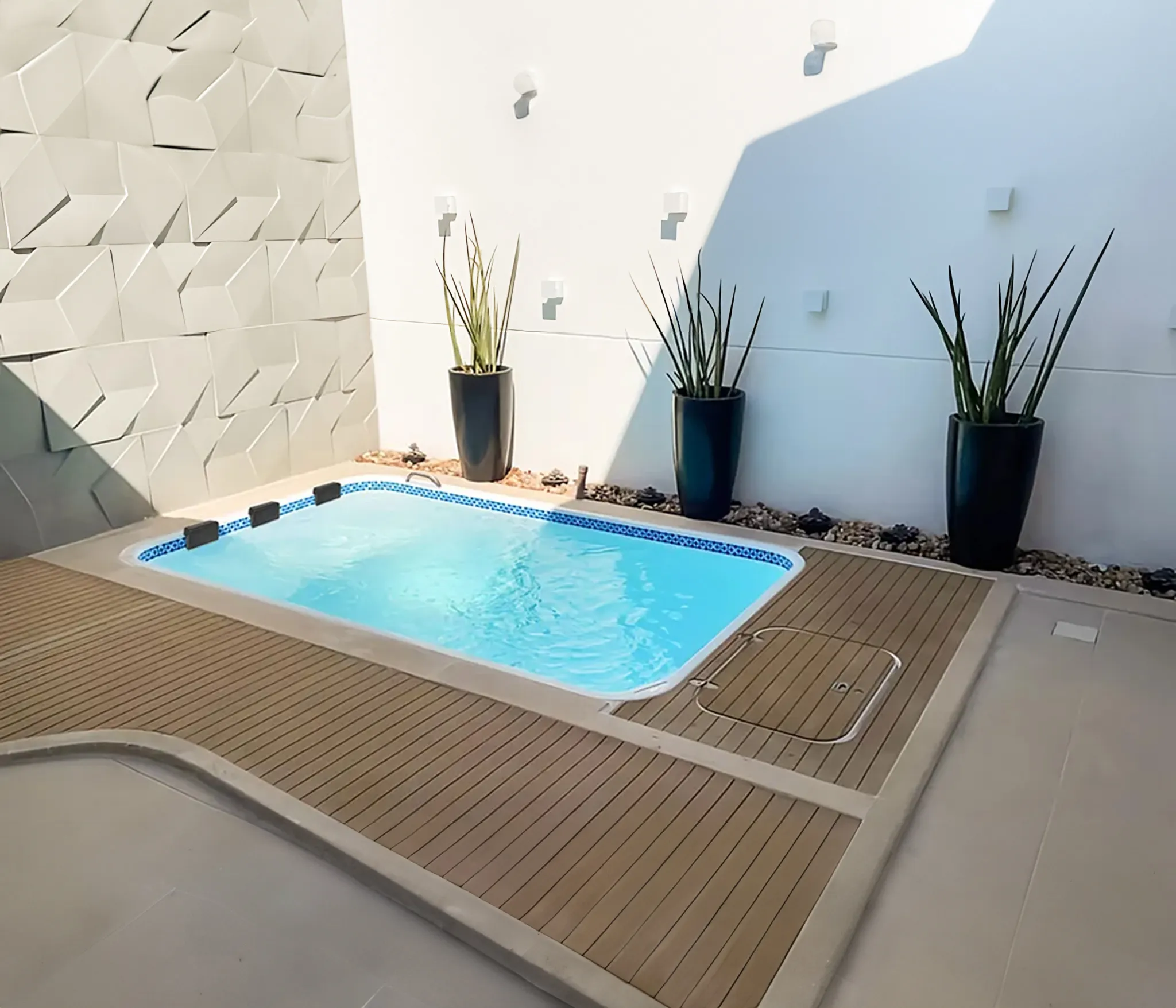 A casa de máquinas acoplada da Pipeline é um diferencial exclusivo que une sofisticação e praticidade. Integrada à estrutura da piscina, ela elimina a necessidade de construções externas, economiza espaço no terreno e preserva a estética do ambiente.